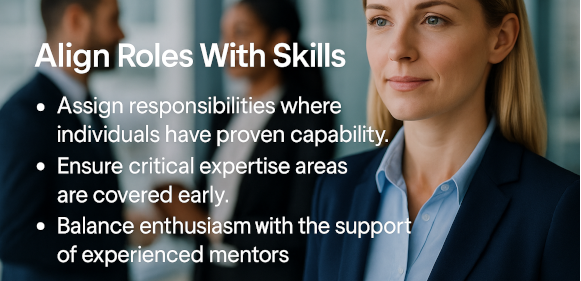 Crucially, skilled leads must be empowered to identify the roles required and select individuals whose skills match those needs. This prevents mismatches and ensures delivery realities drive staffing decisions.