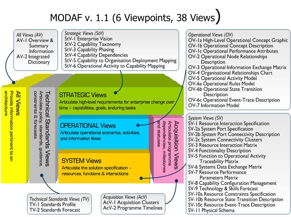 MODAF is an enterprise architecture framework used by the UK Ministry of Defence to model, document, and understand complex defense systems and processes. It provides a way to visualize the relationships between systems, capabilities, and organizational processes. MODAF focuses on ensuring that all stakeholders, particularly in the defense domain, have a clear view of the systems and their interactions.