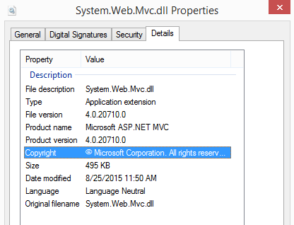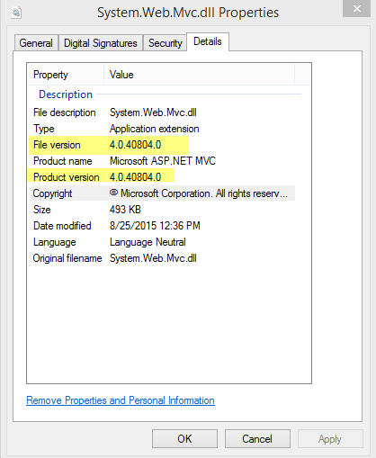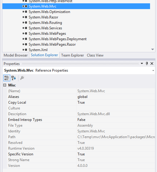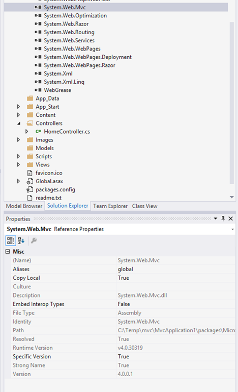Looking at the System.Web.Mvc.dll that was delivered with the new .NET 4 application we have the following dll. In addition, if we look at the existing Nuget packages in the application we have the following package
