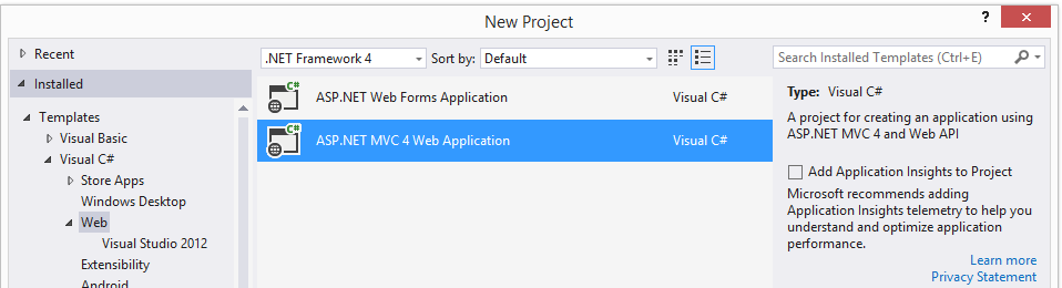 While creating a new web application targeting .NET Framework 4 we see a dialog like the following. Great all good right.