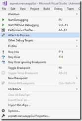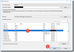 Attaching from within Visual Studio to the dotnet.exe process Debug – Attach to Process