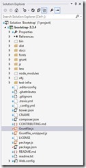 The following are steps that I recently used to setup our environment to edit the most recent release of Bootstrap (3.x) while taking advantage of all the existing Less files. Grunt will automate a number of tasks for us. In addition the details below will setup a Visual Studio 2013 environment to use Grunt to build and deploy our Bootstrap files.