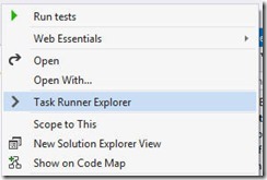 8.) Open the MVC project and right click on Gruntfile.js You will see a new option.