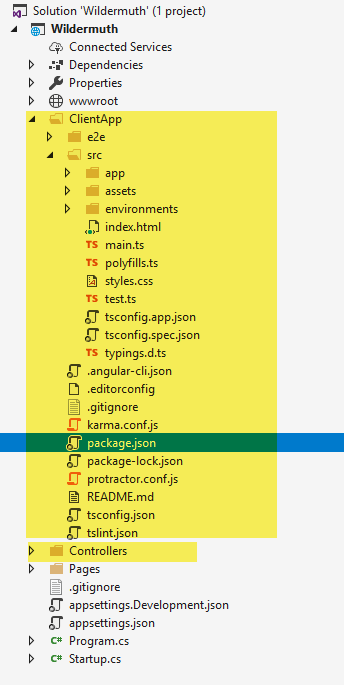 I end up with the following directory structure for hosting both my asp.net project and my angular client app.