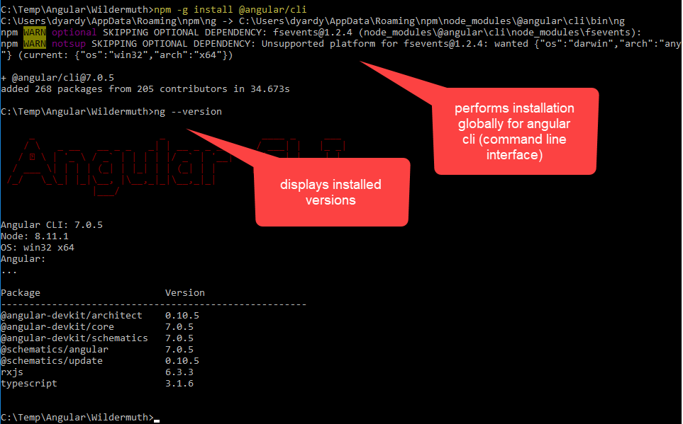 Now if you try to start the Angular CLI web server from the command prompt referencing the global CLI you will see typical error/warning C:\Temp\Angular\Wildermuth\ClientApp>ng serve Your global Angular CLI version (7.0.5) is greater than your local version (1.7.0). The local Angular CLI version is used. Okay, so what is going on here. Yes my global version is 7.0.5 while my version in this solution can be found by looking at the package.json where you can see my local version within this project is "@angular/cli": "~1.7.0".