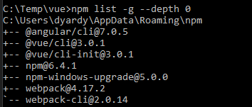 I have already installed vue cli however doing it again you can see vue was updated from 3.0.1 to 3.1.1 npm install –g @vue/cli
