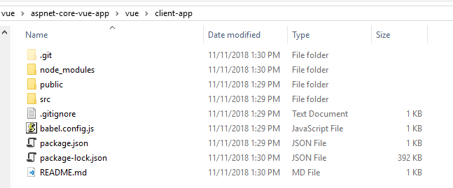 Moving all the Vue CLI code now to the VS.NET folder ClientApp. I am using Visual Studio in this tutorial (not vscode). ![]()