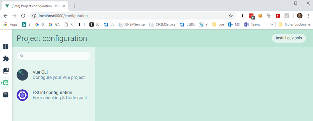 3 With a command prompt, cd to the ClientApp directory and npm run serve (after you can browse to the site via http://localhost:8080 as the on screen instructions provide) Let’s do this again, but instead of creating the vue app via the vue cli this time I will use the vue ui to build the vue app. Create another React application using the template within Visual Studio. Make the same modifications as above to the Startup.cs. Using vue ui command line and the browser based wizard create another vue app named ClientApp. When complete copy it to your Visual Studio project on top of the existing ClientApp folder.