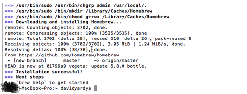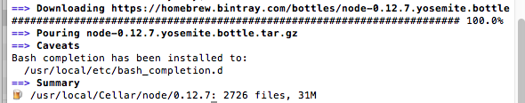 Once Homebrew is installed, you can easily get Node.js by typing the following command in the Terminal window: