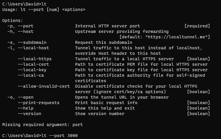 npm install -g localtunnel