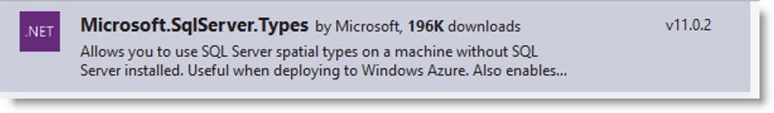 System.InvalidOperationException: Spatial types and functions are not available for this provider because the assembly 'Microsoft.SqlServer.Types'