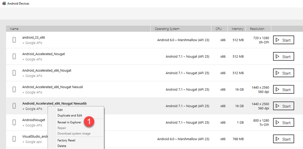 Locate the configuration files by opening the directory for the particular emulator. Ensure that the emulator is stopped before proceeding.