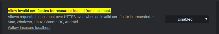 Enable the option that says "Allow invalid certificates for resources loaded from localhost".