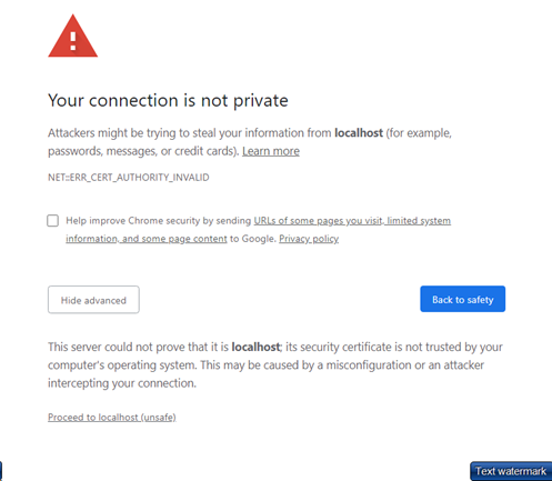 Seen1 this "Your connection is not private” while working with https on your localhost (workstation).